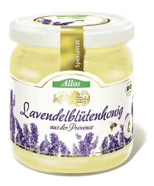 Allos Lavendelblütenhonig Bio aus der Provence (Frankreich) ist hellgelb und schmeckt fein-cremig. Diese einzigartige Spezialität von besonders edlem Aroma zählt zu den delikatesten Honigsorten der Welt. Er ist ein Traum von Blütenduft und unvergleichlich edel und fein im Geschmack.